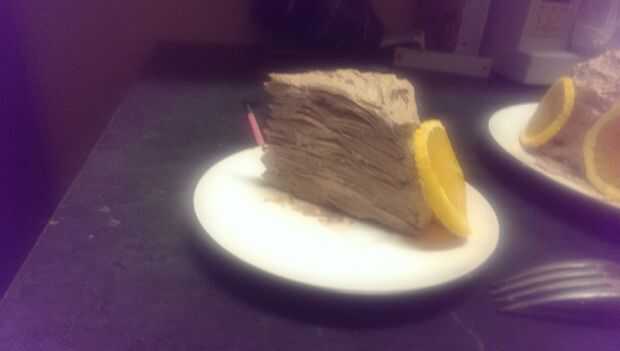 con sabor a naranja deliciosos crepes entre capas de mousse de chocolate de naranja.