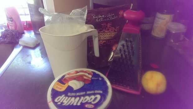 látigo fresco 1 envase o casa hecha crema batida (mis cosas de cocina todavía está en Saskatchewan por lo que estoy usando cool whip)