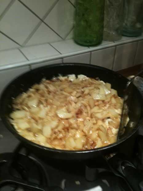 Tradicionalmente españolas tortillas contienen patatas, personalmente considero que la adición de patatas de la tortilla para hacer el plato ahora a pesado. Así que he optado por abstenerse de su uso, esto significa que en algunos se respeta la recet
