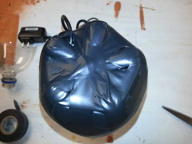 Cinta de la parte inferior de la botella con cinta aislante negra. Envuelva la cinta aislante hasta otro pulgadas pasado la costura entre las dos botellas y toda la manera abajo y todo el fondo de la botella, como se muestra. Esto sólo impide que la luz sangrado fuera de la base de la botella, ya que las chinches apestosas se sólo se agrupan alrededor de la parte inferior de la botella y no bajar en él.