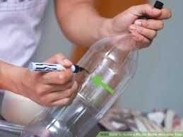 Bueno, parece que al igual que una imagen más o menos... Así que empieza por tomar una botella de... Corte la parte de donde la botella empieza a enderezar... Como se puede ver en la imagen ya está marcado el lugar...