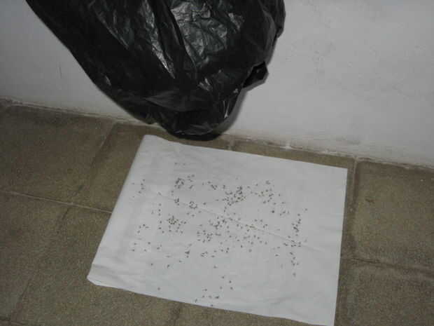 Agitar la bolsa de polietileno en una hoja de papel blanco.