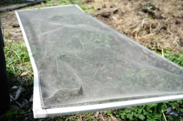 Encontrar un cubo sin propósito o contenedor y alguna pantalla de ventana antiguo o nuevo. Corte la pantalla mucho más grande que el tamaño de la tapa así que no habrá ningún luchar para un buen ajuste.