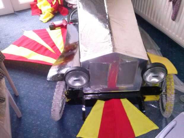El capó estaba cubierto de la misma manera usando la plata fablon. Esto le da un acabado fantástico y creo que vamos a usar este método para la construcción de mis hijas mayores carrito de caja de jabón este verano.