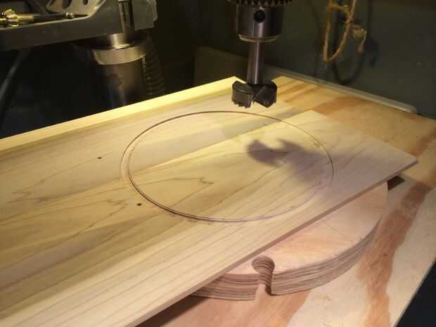 Para la boca, usé una broca en el taladro de 2 3/4" forstner y comentar sólo la distancia en el borde.