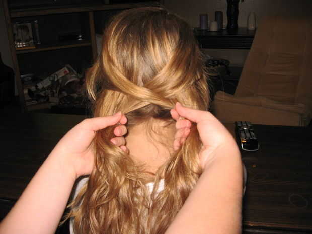 Después de cada cruce, tire suavemente de ambas secciones del pelo hacia abajo y ligeramente juntos otra vez para apriete de la trenza.