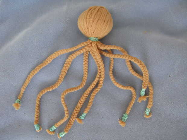 Tenga en cuenta que muchos niños tienen dificultades para atar el extremo de la pierna después de que hayan terminado de trenzarlo. Cuando ella ha llegado al final de la pierna, le invito a traer el pulpo con usted así que usted puede atar apagado. En este punto, usted puede escoger a tres sets más cerca unas de otras y decirle a ésas trenza. Continúe este proceso hasta que las ocho patas han sido trenzadas