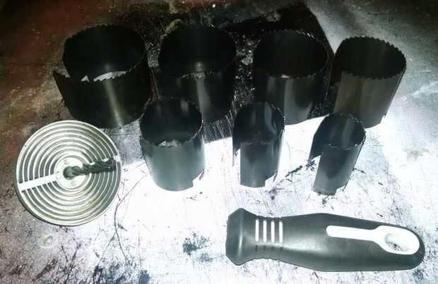 Para empezar aquí, tienes que abrir los paquetes y desmontar la sierra. Se trata de una sierra modular con hojas entrelazadas de varios tamaños. Normalmente sólo se utilizaría una hoja a la vez. Pero, de nuevo, normalmente que sería usar esto en un taladro también. Esta es una buena oportunidad para inspeccionar las piezas y conocer su pronto para ser de nuevo amigo. Una vez que se han hecho presentaciones, tomar la acetona o alcohol desnaturalizado a las piezas para eliminar eso fábrica de la grasa. Este es un paso importante aquí como cualquier grasa a la izquierda en la herramienta piezas interferirán con la correcta adherencia del pegamento.