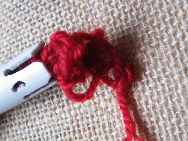 Con sus uñas, un gancho de ganchillo o similar, el primero inferior, lazos en la parte superior de las pestañas, que atrapan los bucles de segunda, superiores en su lugar. Dar el final de la lana de un tirón suave para poner los lazos en la parte inferior de las pestañas.