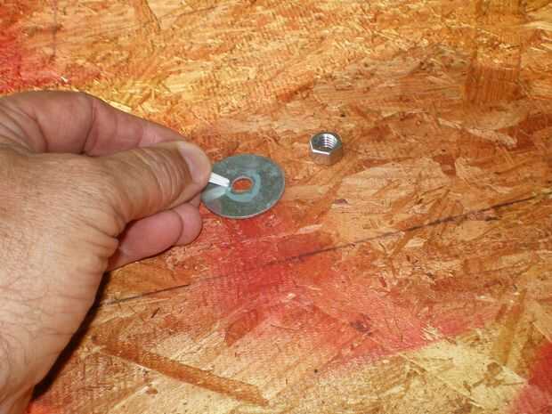 Debe haber trabajado. Por desgracia, no pude mantener la lavadora equilibrada en la tuerca lo suficiente para conseguirlo roscado. He intentado grabar las obras todo juntos, pero yo seguí golpeando la lavadora fuera de línea con la tuerca o empuja la tuerca para hacer la cinta suelta.