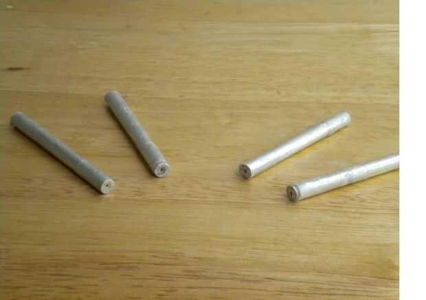 Ya que la turbina funciona con poca corriente, todas las superficies metálicas (excepto los bordes del ionizador!) deben ser suaves para reducir la salida de corona. Iniciar la construcción de barra de energía por taladrar un agujero de 1/32 centro aproximadamente 1/2" en ambos extremos de cada varilla. Envuelva las barras con papel de goma de mascar para hacer chaquetas conductoras. Asegúrese de que todos los bordes son lisos.