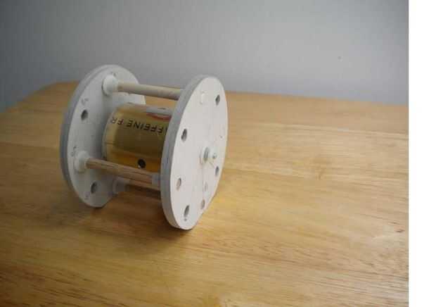 Antes de Insertar columnas en los agujeros correspondientes de la azotea, inserte el ensamble de eje en la jaula por lo que el eje pasa a través de los rodamientos de piso y techo. Conecte y ajuste el techo de modo que ambos discos son paralelos y descansan sólidamente sobre las bridas de aislante.