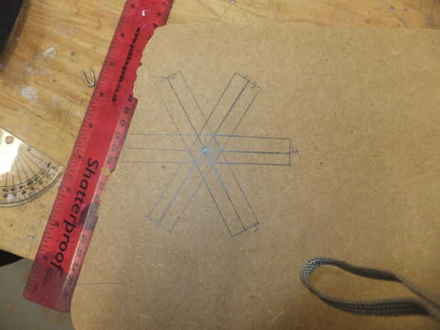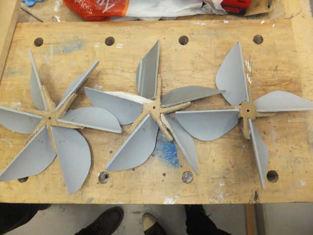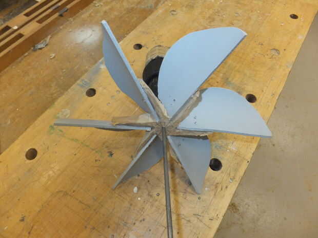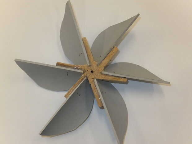 el centro fue creado en tales lejos que las cuchillas están inclinadas en ángulo de 30 grados (otra vez a través de pruebas se encontró que tener más hojas produce más tensión, pero con esta configuración la hoja máximo podría sostener el eje seis)