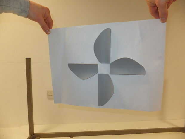 La forma de la lámina es dependiente de la dirección que desea que gire (en sentido horario o antihorario), esta forma asegura que el viento sopla las hojas en sentido horario.