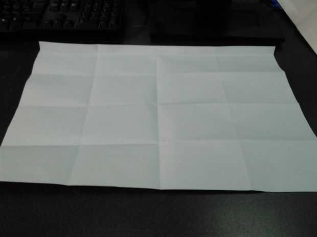 1, doble el papel en mitad y mitad otra vez y se abren hacia atrás tanto horizontal y verticalmente. Esto le dará 16 rectángulos iguales.