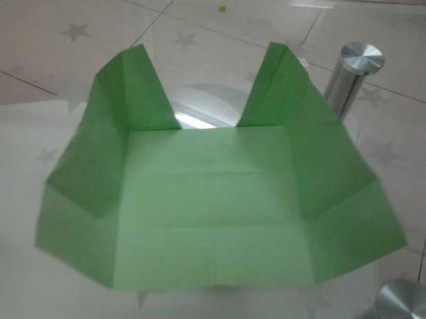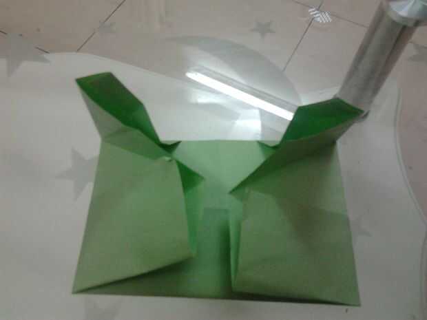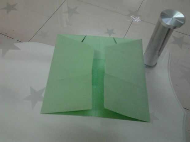 1, donde ya hay pliegues, doblar los lados hacia el centro, luego ábrela hacia fuera totalmente, así...