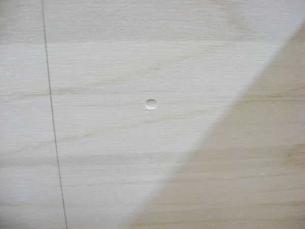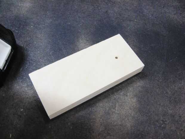 Las hendiduras eran puñetazos además con un clavo para perforar, y se perforaron agujeros de 1/8" con la ayuda del bloque de guía.