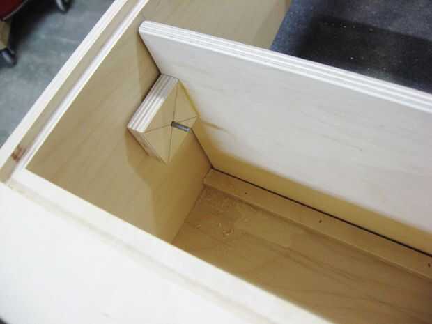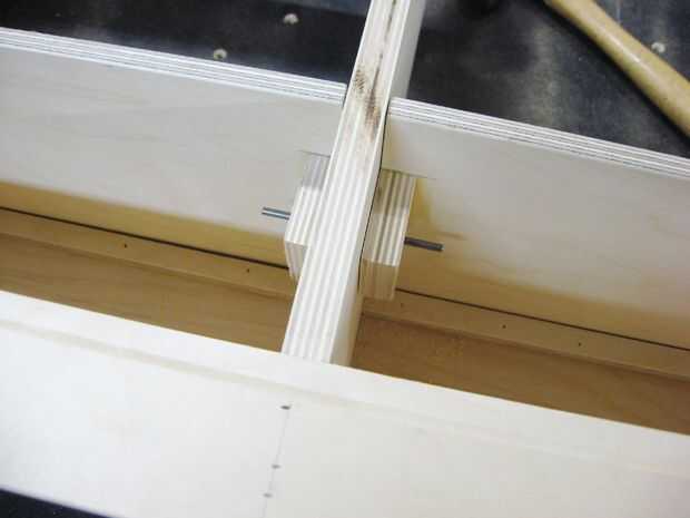Más piezas de varilla de 1/8" se cortaron y se instala a través de los bloques de la bisagra y las paredes de la caja de la cabecera.
