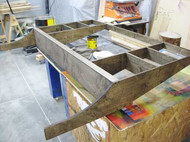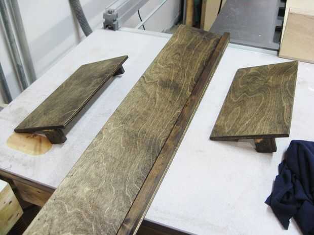 Esto fue seguido por dos capas de goma laca con un ligero lijado con lija de 220 entre capa y capa y después de la última capa. Luego todo fue pulido con pasta de cera para muebles.