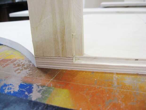 Se hicieron varios desniveles en los rieles y piezas laterales con un router de mesa para acomodar el espejo y piezas panel de respaldo. En caso necesario, los extremos de estos rebajos eran cuadrados para arriba con un cincel afilado.