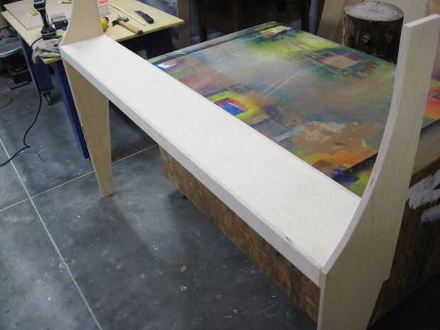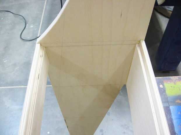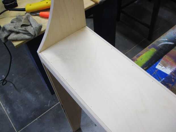 Un panel de 3/8" espesor inferior fue pegado y clavado en su lugar para crear el fondo de la caja.