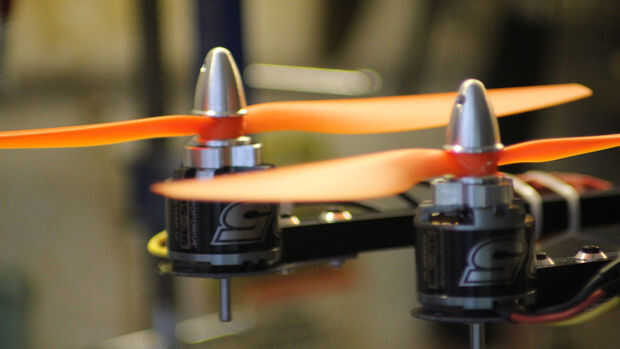 Ahora abra su paquete de hélices. Debe vienen en un set de 1 izquierda y 1 hacia la derecha. Dependiendo de la forma seleccionada en su configuración de KK, aplicar el properllors en sentido contrario a los motores que giran hacia la izquierda y la derecha a los que giran las agujas del reloj. Habrá un conjunto de espacios que debe venir con sus hélices. Prueba y seleccionar el más grande que quepa en el eje del motor. Usted debe sentirlo 'morder' sobre la rosca del perno. Esto es lo que se pretende pasar - por lo que obtiene un mejor agarre y no soltarse. Girar la hélice hasta el fondo del pozo, luego enroscar el cono - una tuerca de curvas. Esto tiene que ir lo mas ajustado posible a la hélice, por lo que mantiene el propulsor hacia abajo. Aunque usted no, usé un par de pinzas para asegurarse de que realmente estaba atascado hacia abajo y no sale aire. otra vez, si tiene que añadir pegamento o locktite.