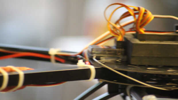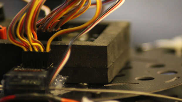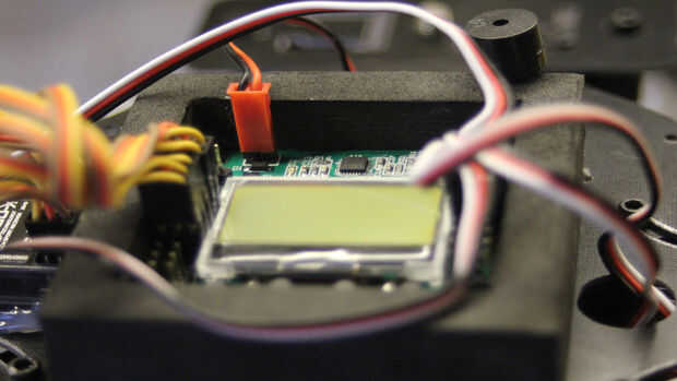 Montar el receptor pequeño a su lado y asegure con pegamento caliente. El receptor puede colocarse en cualquier lugar en el marco, pero debe ser lo suficientemente cerca de la Junta para conectar con los cables de 10cm.