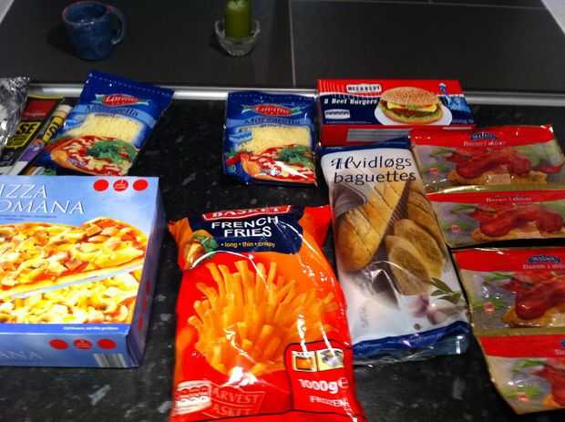 -Un paquete de 3 pizzas congeladas - los más baratos!