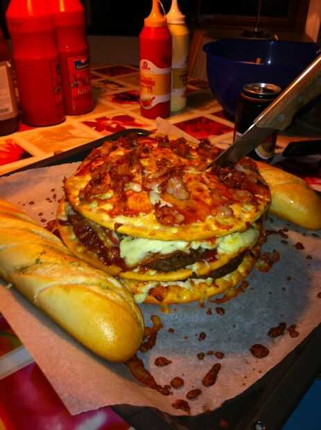 Para decorar todo un poco, decidimos difundir tiras de tocino encima de 'El último Burger' así.