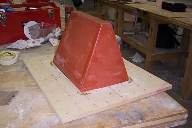 El molde triangular se encuentra en una lámina plana de MDF. Pequeñas perforaciones cada 2 pulgadas o que permita que la aspiradora aspirar hacia abajo en la parte. Una 1/8" pedacito de taladro es bueno, demasiado grande de un agujero hará que el plástico se crea divits como el vacío tire de ella en el agujero. Los pedacitos más pequeños permiten la succión sin imperfecciones en el plástico.