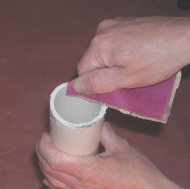 3. Si utiliza una sierra para cortar el tubo de PVC, utilice papel de lija para suavizar el interior y bordes exteriores.