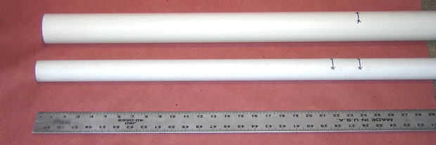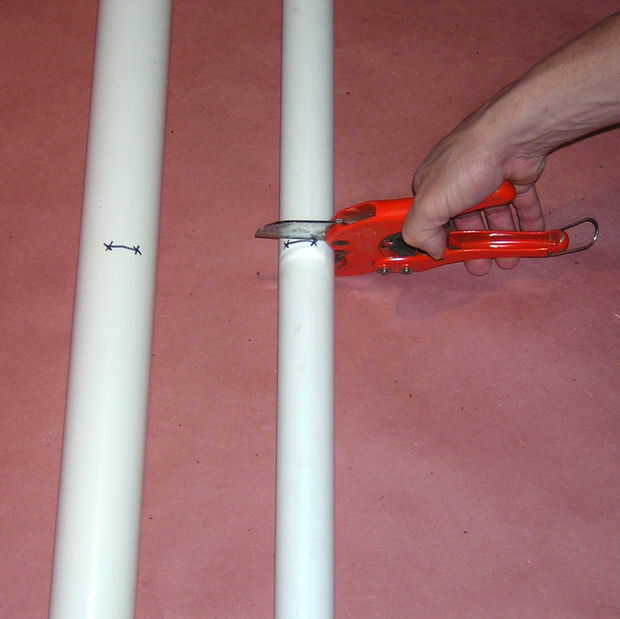 1. Mida el tubo de PVC de 1 1/4" en longitudes de 22" y 2". Mida el tubo de PVC de 2" en una longitud de 24.