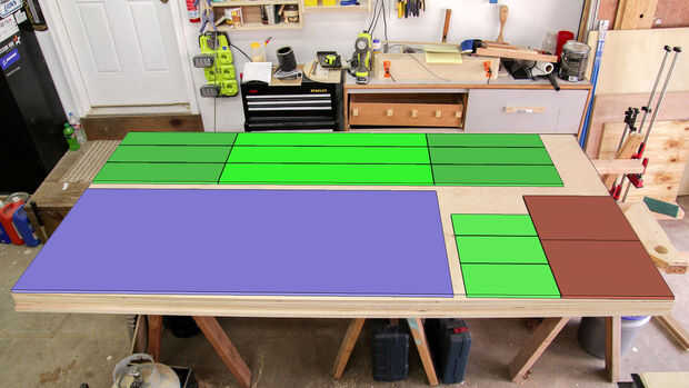 SketchUp fue un ahorro de tiempo enorme en este proyecto. Porque me dise que los ingletes toda estación y diagramas de diseño creado para la madera contrachapada en SketchUp primero fue muy productivo el tiempo empleado en la tienda. No había ningún trabajo de adivinar porque todas las dimensiones y calcular ya había sido logrado. Puse todas mis frentes de los cajones para que pudiera cortarlas con un flujo continuo de grano de cajón. (Foto 2)