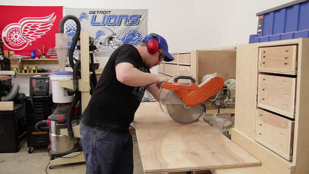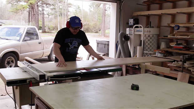Me resulta mucho más fácil de ripear completas hojas de madera contrachapada a lo largo de la dirección larga en primer lugar si es posible. Luego cortar transversalmente paneles más pequeños en la Sierra de mesa no es tan difícil. (Foto 1)