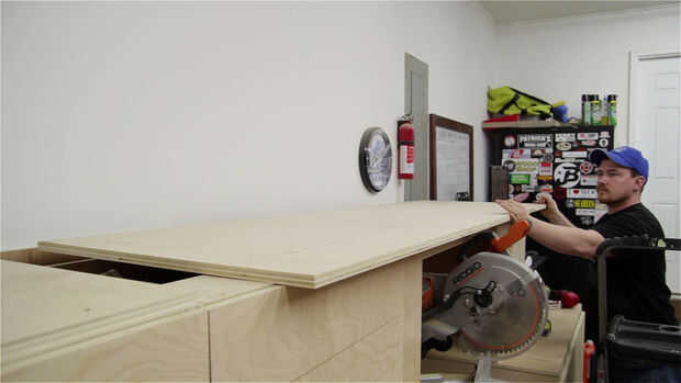 Antes de instalar los estantes que se tapón de las cajas del cajón superior he añadido dos refuerzos horizontales en el inglete vieron área. Esto evitará que el panel superior flacidez con el tiempo. (Foto 2)
