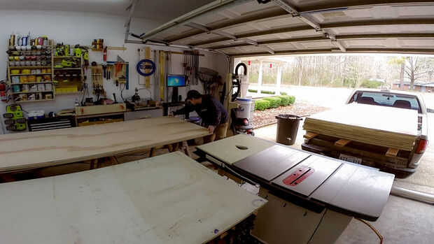 Mi diseño llama para 12 hojas de madera contrachapada de 3/4" y es más o menos el límite de mi camioneta. (Foto 1)
