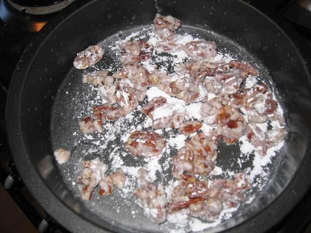 • A continuación, coloque la mitad de las nueces picadas (115g) en un bol y añadir azúcar hasta que la mezcla se asemeja a la imagen. Creo que su sobre 50g.
