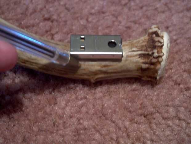 Una vez que desmonte la unidad flash saliendo de su caso, que desea insertar en el puerto USB de tu computadora así que puedes marcar donde comienza la sala "innecesarios" de la impulsión del flash. Una pluma o un archivo de aguja funciona para agregar una pequeña línea a la carcasa de acero de la unidad flash.