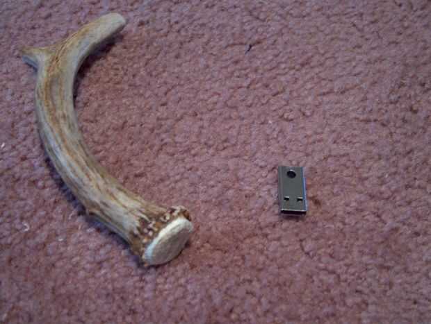 Una vez que tengas tu línea marcada le debe marcar un punto en la cornamenta de los ciervos con espacio en la punta opuesta para un agujero de la llave del collar de cadena.