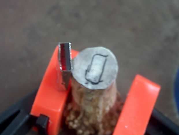 Una vez que tenga su primer corte hecho arena si es necesario, pero si no marca la forma del extremo de la impulsión del flash en o alrededor del centro de la cornamenta. Marqué mi rectángulo un poco debajo del central ya que tengo un puerto USB de baja en mi portátil. El rectángulo está marcado fácilmente con un lápiz trazando el borde exterior de la unidad flash.