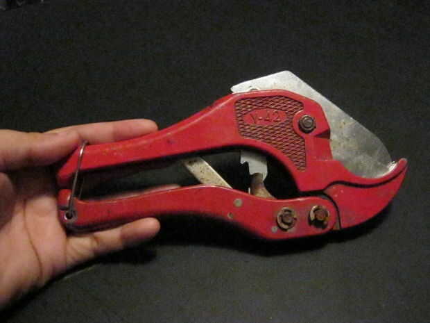 * A pesar de que podría utilizar una sierra, opté por usar un cortador de PVC porque es más rápido y puesto que los palos están en el lado fino, realmente no va a dañar las cuchillas. Esto no es necesario, pero es el camino que elegí.