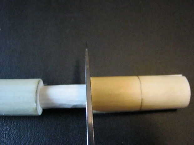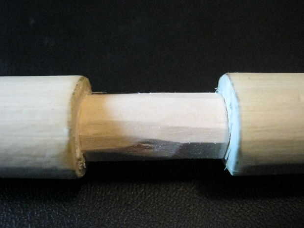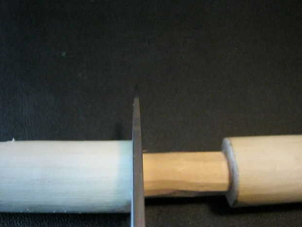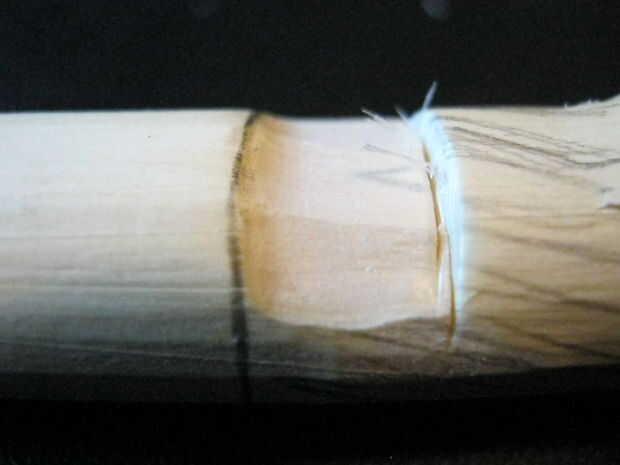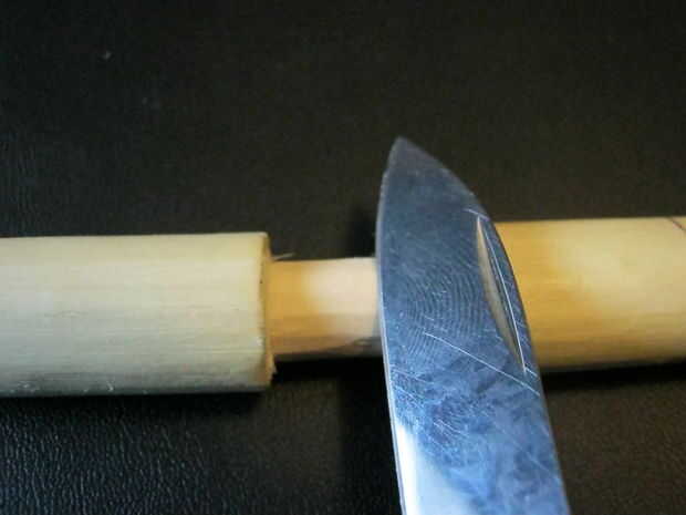Voy empezar con cortes poco profundos que casi la mitad de la longitud de la sección delgada, luego realizar un corte a 90 * para sacar virutas pequeñas. Ir alrededor de la varilla entera haciendo esto en ambos extremos de la zona delgada hasta que el grosor que desee.