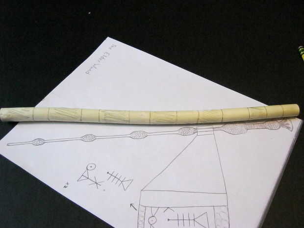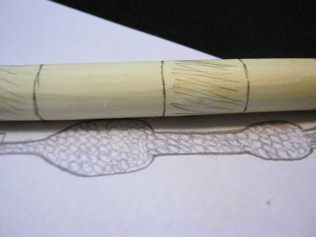 Ya que estoy haciendo la varita de saúco, hay algunas secciones que son delgadas, mientras que algunos no son. Así que mi bosquejo áspero es sombra en algunas zonas. Estas son las áreas que se van a ir.