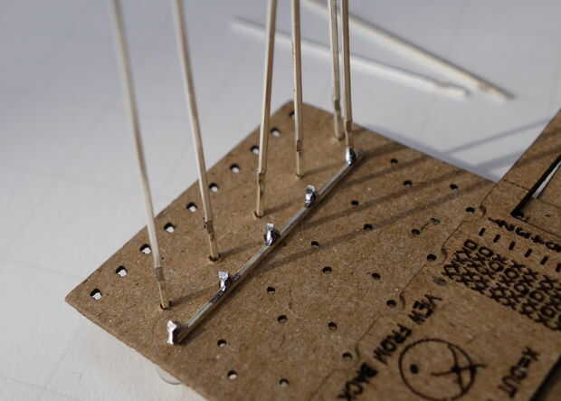 Trate de clip abajo bajo, cerca de la Junta de soldadura como sea posible. Pronto habrá más conexiones sobrevolando por encima de estos y queremos habitación para asegurarse de que no tocan. Recorte hacia abajo baja también producirá más bares, que facilitará las cosas más tarde.