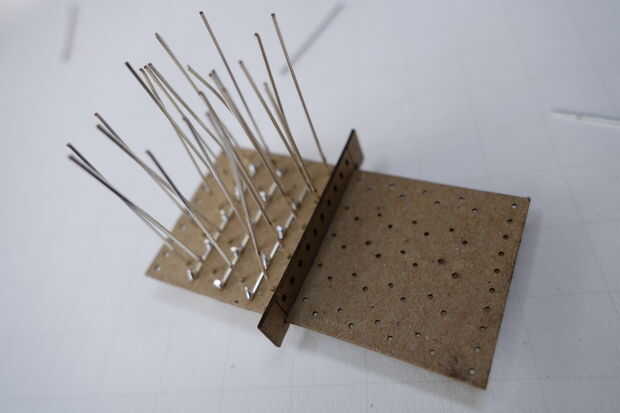 Cuando termine con la fila 4, vas a diapositiva en el puente como se muestra. Los agujeros en el puente deben estar en la tabla de la matriz que se suelda.
