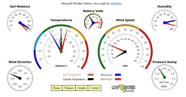 Ahora la información está montada con un montón de otra lectura de una serie de sensores y compilada en una secuencia especial de caracteres para ser transmitido por un módem celular móvil a un servidor en Londres, Reino Unido a través de la web de Inter. Si con éxito, el servidor recibe los datos, hace un 'Call Back' a la estación y los sensores se restablecen a cero. El servidor luego procesa los datos, hacer unos cálculos sencillos y luego lo escupe todo en Java Script basado en gráficos y tablas de datos PHP en: http://www.goatindustries.co.uk/weather/