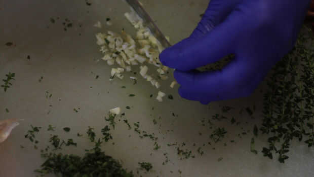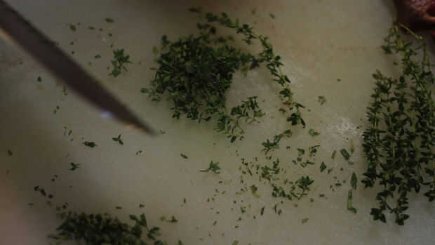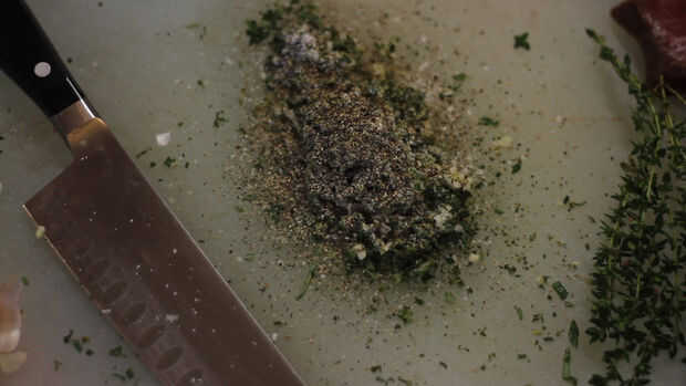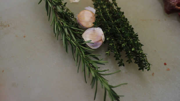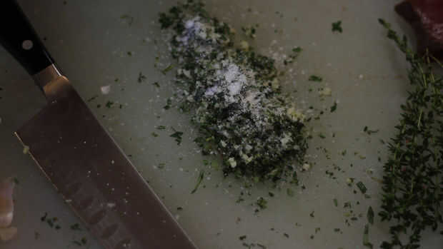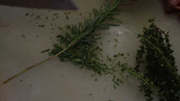 Aquí voy a ir a un poco italiano y darle algunos Romero, el tomillo y el ajo. Podría llevarlo a Asia Sur-Oriental e ir con ajo y jengibre y llamar a esto un satay demasiado.