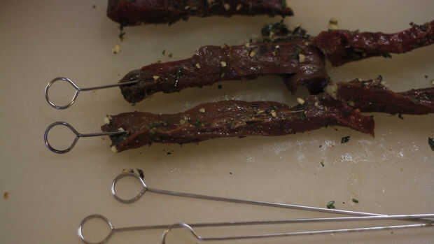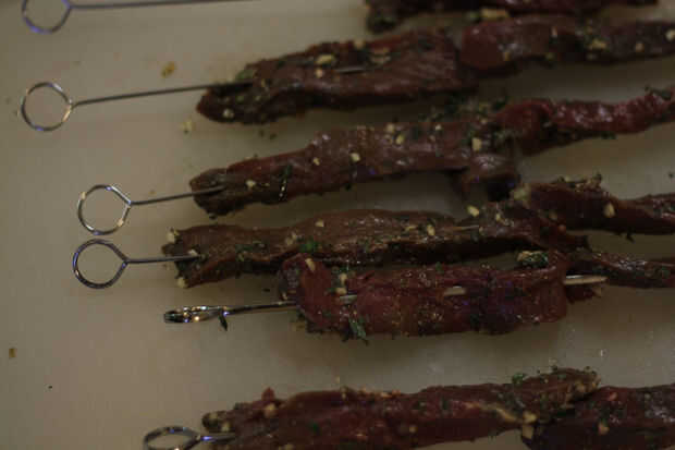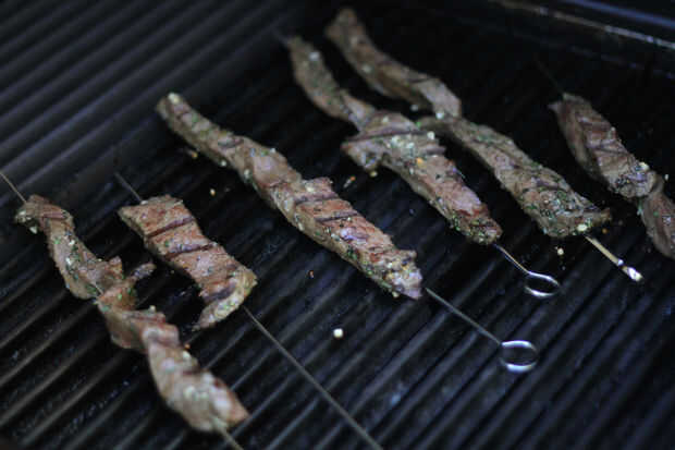 Precaliente la parrilla o grill sartén o parrilla. Tiro que la carne en. Parrilla medio o medio raro. Más que eso y vas a tener cuero de zapato. Y eso no es cool.