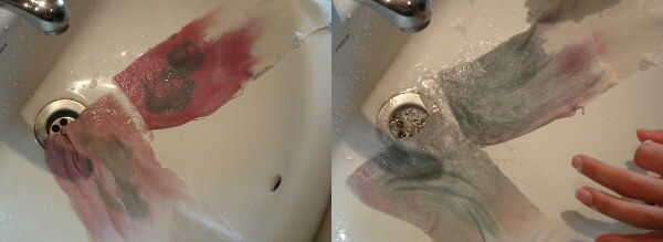 = > es interesante que las manchas se convirtieron en un color verdoso una vez que el jabón la tela...