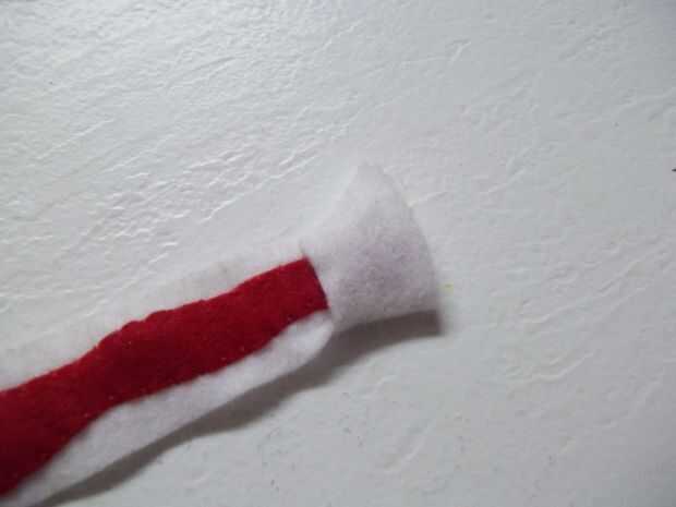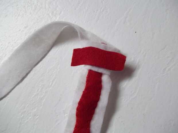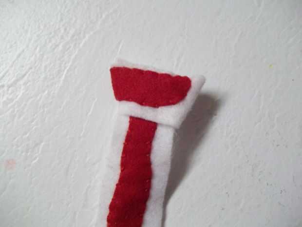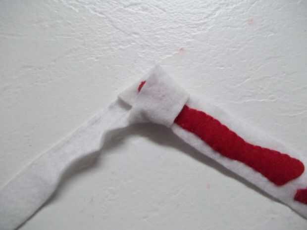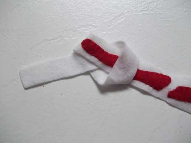 Luego corte un blob de fieltro rojo para ajustar el nudo y coser en el nudo.